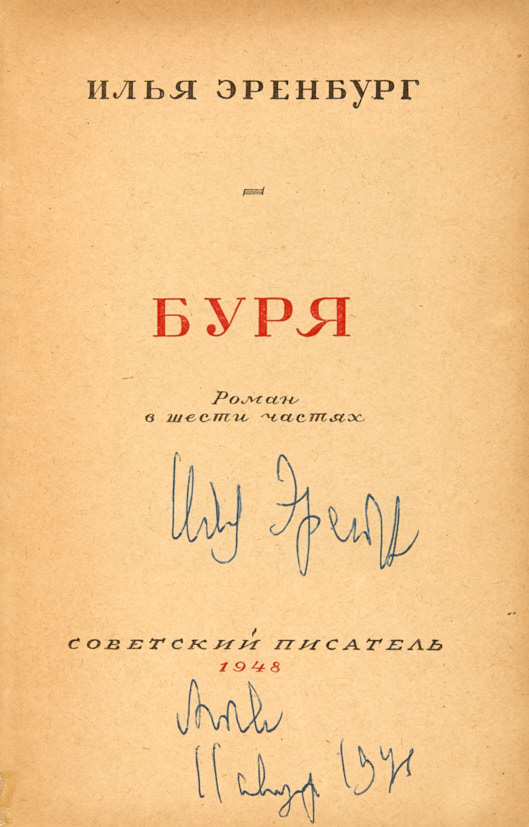 Эренбург, И. [Автограф]. Буря. М.: Советский писатель, 1948.
