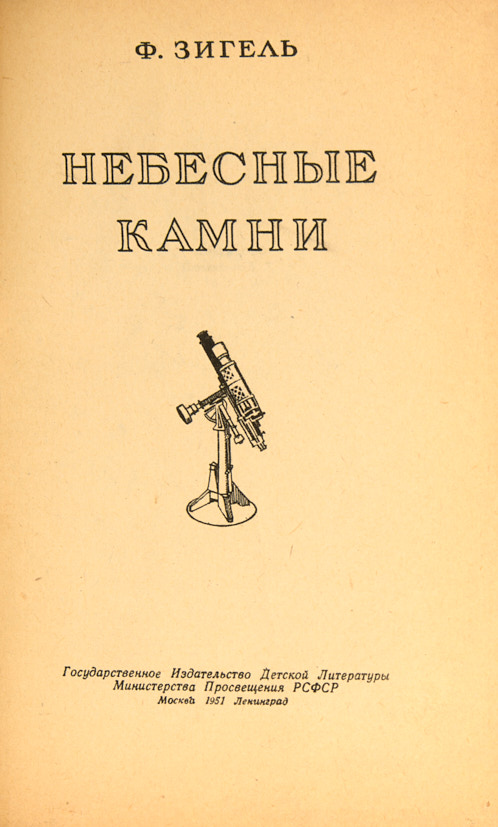 Зигель, Ф. [Автограф]. Небесные камни. М.; Л.: ДЕТГИЗ, 1951.
