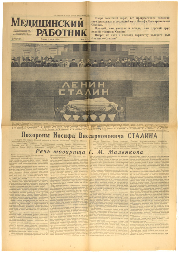 [Выпуск, посвящённый похоронам И.В. Сталина] Медицинский работник. № 20 за 10 марта 1953. М.: Тип. «Гудок», 1953.