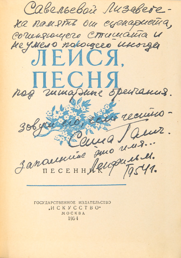 Галич, А. [Автограф]. Лейся песня. М.: «Искусство», 1954.