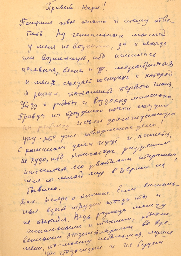 1. Астафьев, В. [Автограф]. Письмо К. Арону. [1960]. 2 c. 28,5 x 20 см. Сгибы.