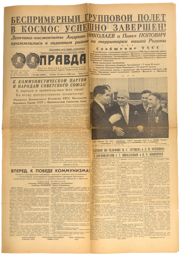 [Первый групповой полет в космос]. Правда. 16 августа 1962.