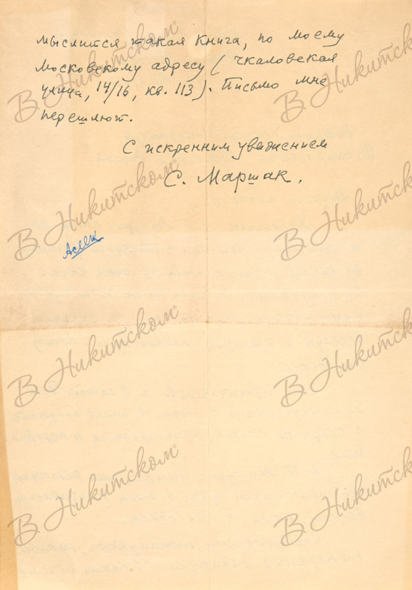 Маршак, С. [Автограф]. Письмо в редакцию детской литературы издательства «Советская Россия». 19 августа 1962.
