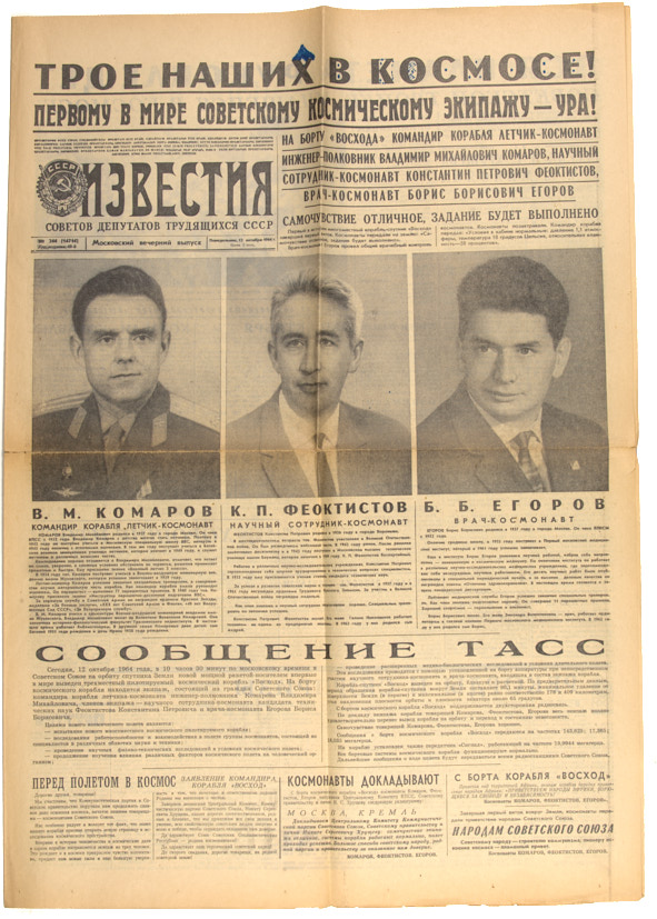 [Первому в мире советскому космическому экипажу - ура!]. Известия. 12 октября 1964.