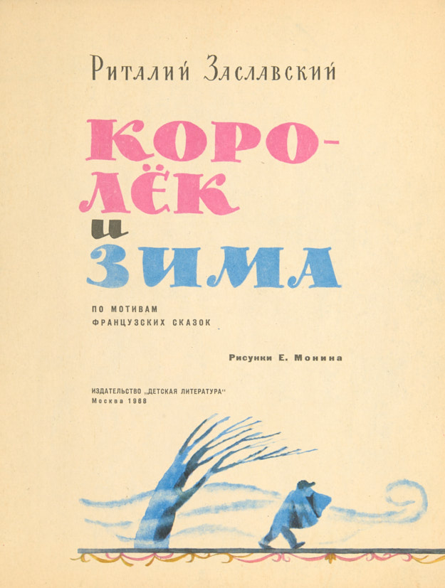 Заславский, Р. Королёк и зима. По мотивам французских сказок / рис. Е. Монина. М.: «Детская литература», 1968.