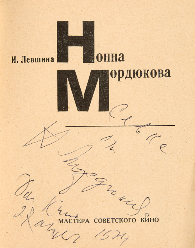 [Автограф Н. Мордюковой]. Левшина, И. Нонна Мордюкова. М.: «Искусство», 1967.