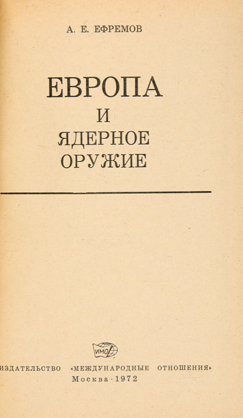 Ефремов, А.Е. [Автограф]. Европа и ядерное оружие. М.: Международные отношения, 1972.