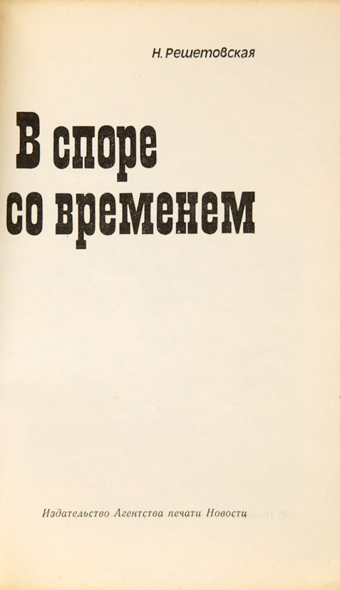 [Авторский экземпляр с правками]. Решетовская, Н. В споре со временем. [М.]: Агентство печати Новости, 1975.