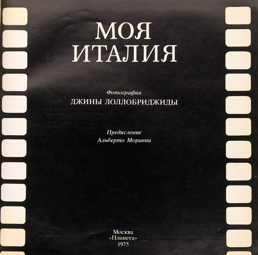 [Автограф актрисы Джины Лоллобриджиды?]. Моя Италия. Фотографии Джины Лоллобриджиды / пред. Альберто Моравиа. М.: «Планета», 1975.