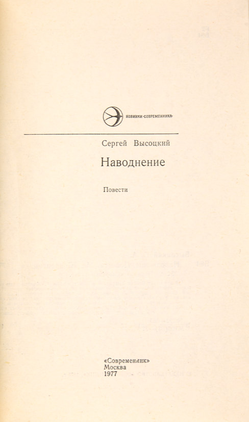 Высоцкий, С.А. [Автограф]. Наводнение. Повести. М.: Современник, 1977.