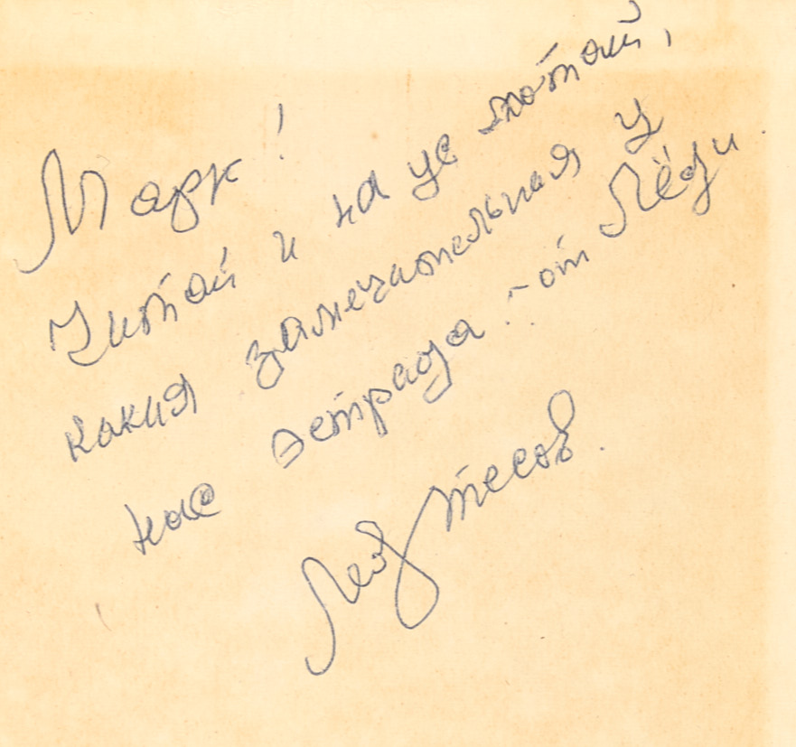 [Автограф Л. Утёсова?]. Булгак, Л. Леонид Утёсов. М.: «Искусство», 1977.