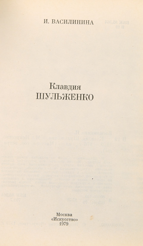[Автограф Клавдии Шульженко?]. Василинина, И. Клавдия Шульженко. М.: «Искусство», 1979.