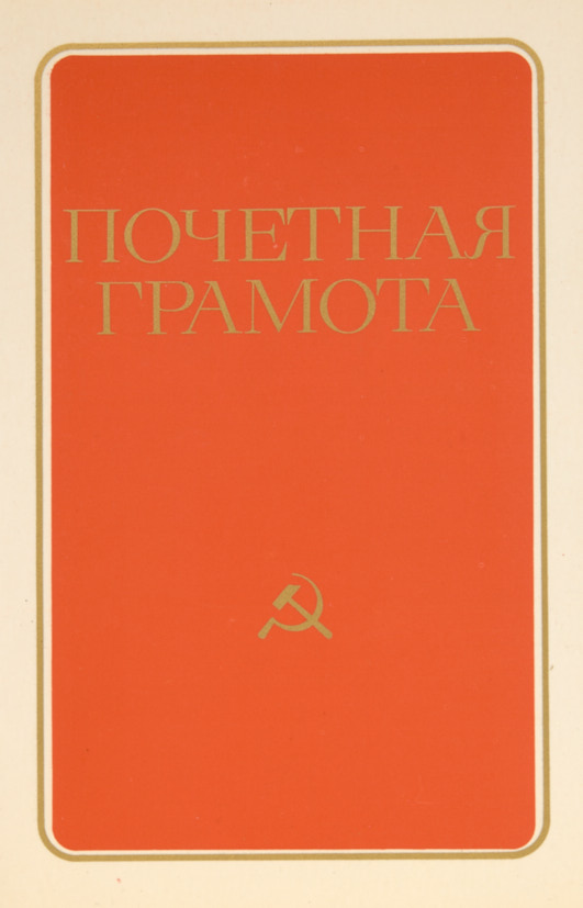 1. Лозино-Лозинский, Г. [Автограф]. Почетная грамота Л.А. Слуцкой за успешное выполнение плана. 1983. 22,5 х 14,5 см. Грамота подписана генеральным конструктором НПО "Молния" Глебом Евгеньевичем Лозино-Лозинским.