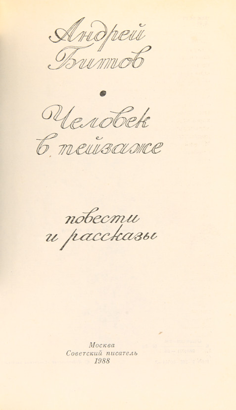 Битов, А. [Автограф]. Человек в пейзаже. М.: «Советский писатель», 1988.