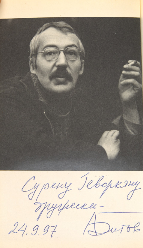 1 л. фронт., 457, [5] с. 20,7 х 13,5 см. В ледериновом издательском переплете с золотым тиснением. На фронтисписе автограф: «Сурену Геворкяну / дружески - / 24.9.97 АБитов».