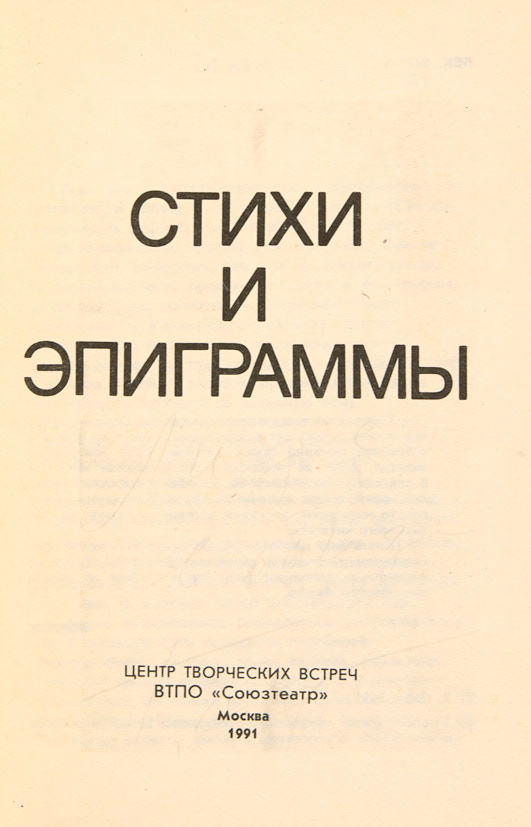Гафт, В. [Автограф?]. Стихи и эпиграммы. М.: «Союзтеатр», 1991.