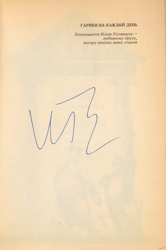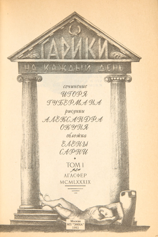 Губерман, И. [Автограф]. Гарики на каждый день / рис. А. Окуня, обл. Е. Сарни. [В 2 т.] Т. 1-2. М.: МП ЭМИА, 1992.