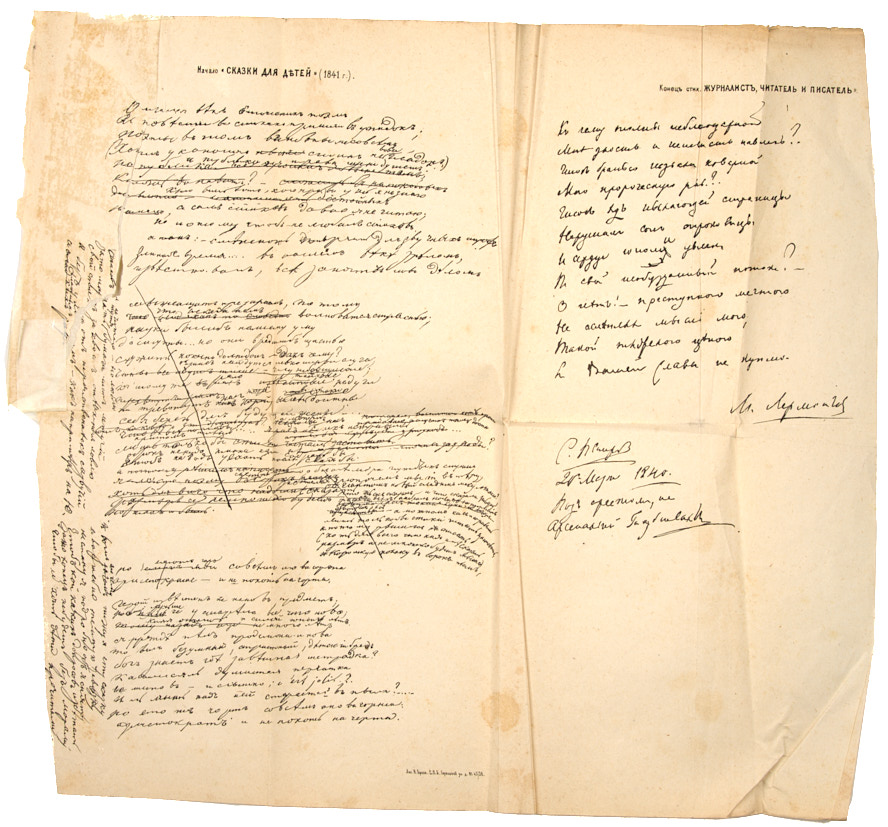Портрет М.Ю. Лермонтова и лист факсимиле к изданию «Лермонтов, М.Ю. Сочинения Лермонтова. С портретом его, двумя снимками с почерка и статьею о Лермонтове А.Н. Пыпина. [В 2 т.]. 3-е изд., вновь свер. с рукописями, испр. и доп., под ред. П.А. Ефремова. СПб.: Изд. книгопродавца А.И. Глазунова, 1873».