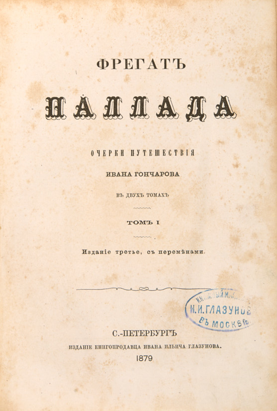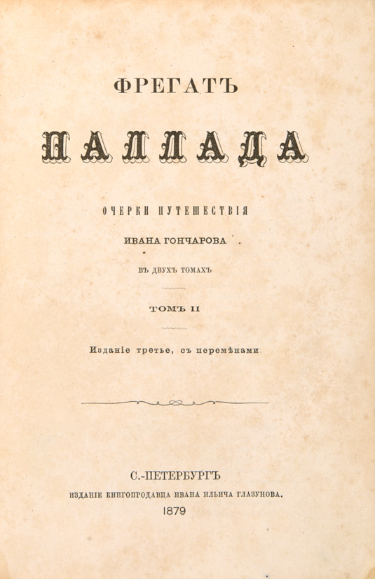 Гончаров, И. Фрегат Паллада. Очерки путешествия. В 2 т. Т. 1-2. СПб.: Изд. И.И. Глазунова, 1879.