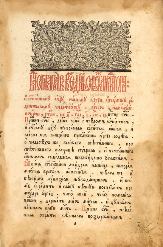 Житие Сергия Радонежского и учеников его Никона и Саввы Сторожевского. Клинцы: Тип. Д. Рукавишникова и Я. Железникова, 18 июля 1786.