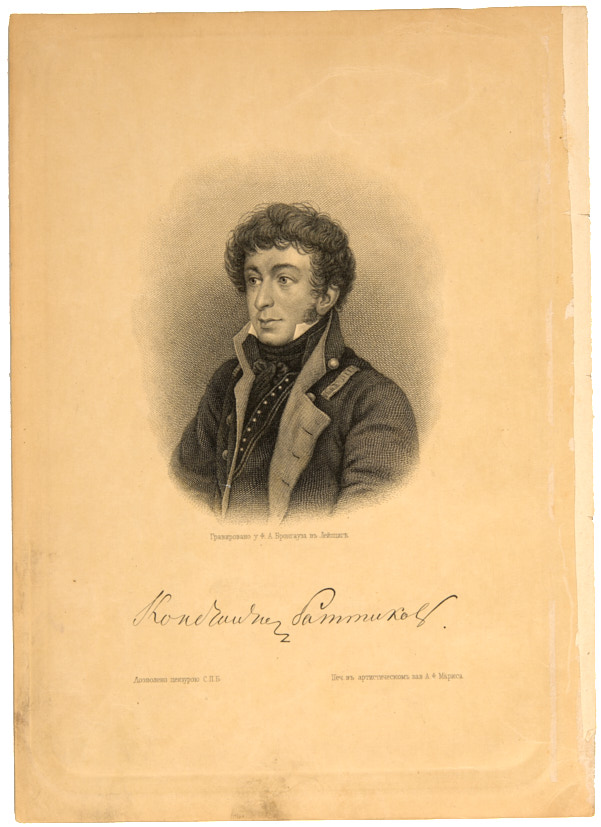 Фронтиспис с портретом К.Н. Батюшкова к изданию «Майков, Л Н. Батюшков, его жизнь и сочинения. СПб.: Тип. В.С. Балашева, 1887».