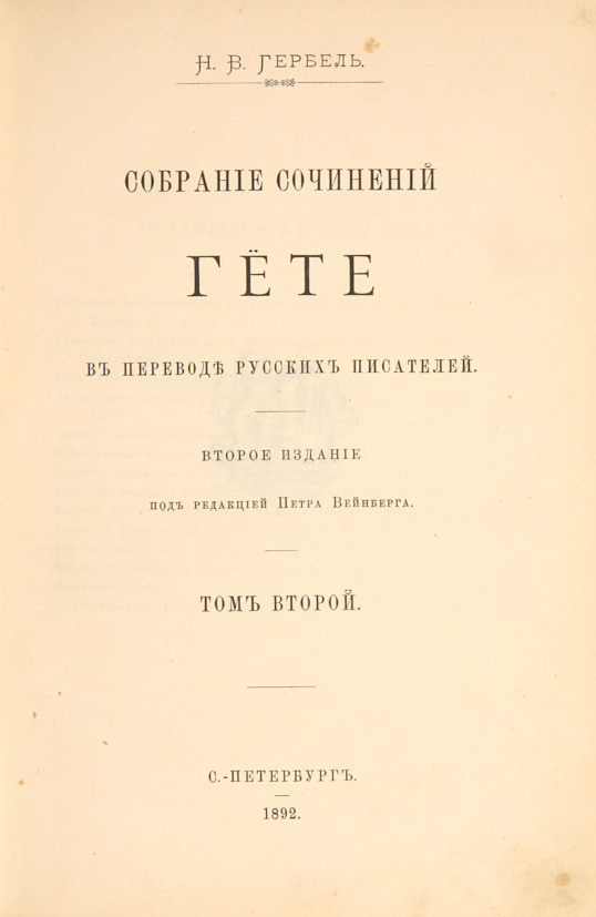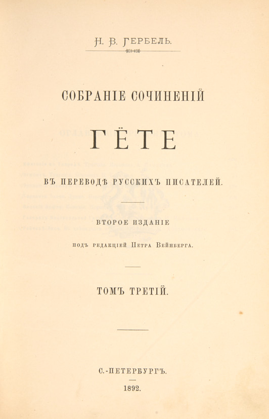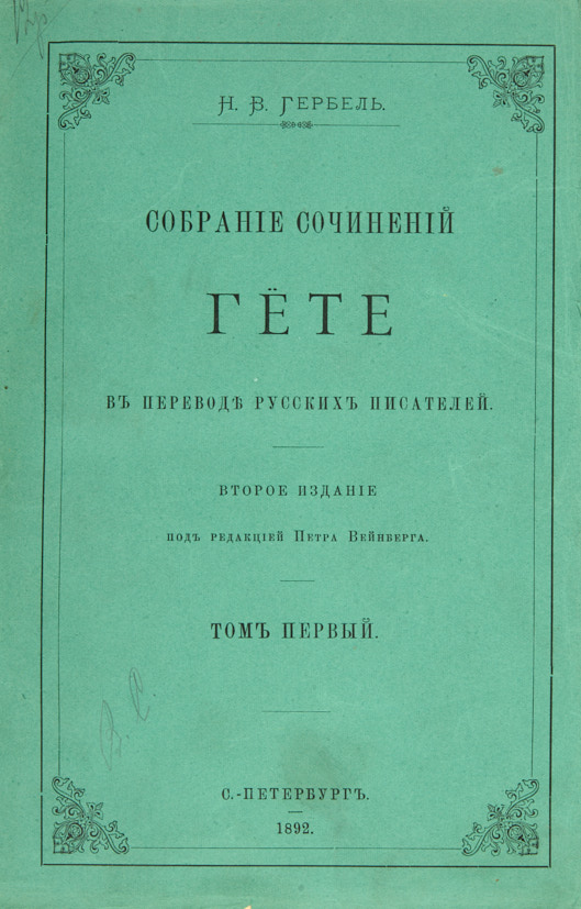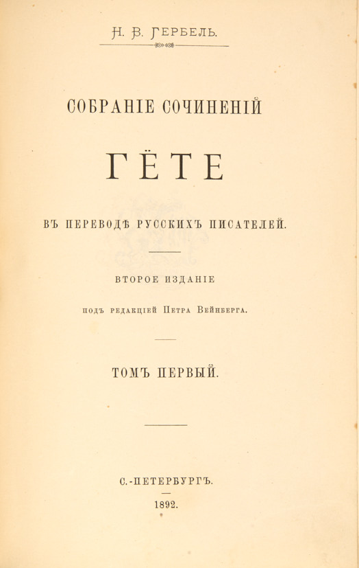 Гете, И.В. Собрание сочинений Гете в переводе русских писателей. В 8 т. Т.1-8. СПб.: Н.В. Гербель, 1892-1895.