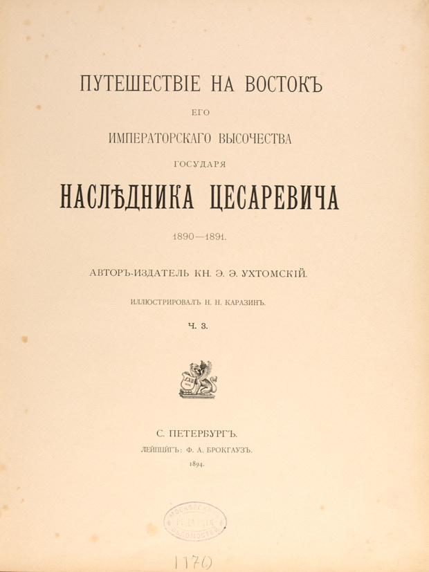 Ухтомский, Э.Э. Путешествие на Восток Его Императорского Высочества государя Наследника Цесаревича [Николая Александровича] 1890–1891 / худ. Н.Н. Каразин. В 6 ч. Ч.3. Лейпциг: Тип. Ф.А. Брокгауза, 1894.
