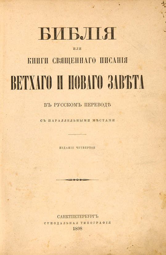 Библия, или Книги Священного писания Ветхого и Нового завета в русском переводе с параллельными местами. 4-е изд. СПб.: Синодальная тип., 1898.