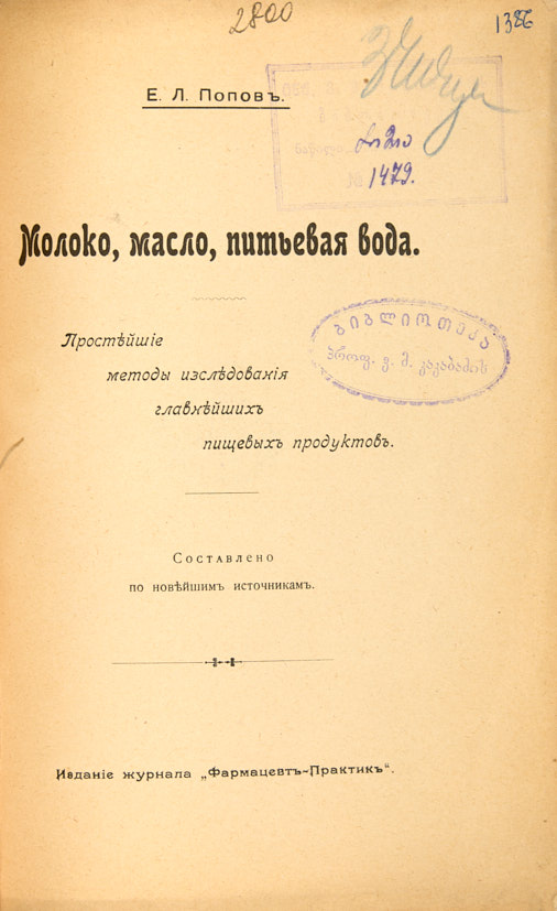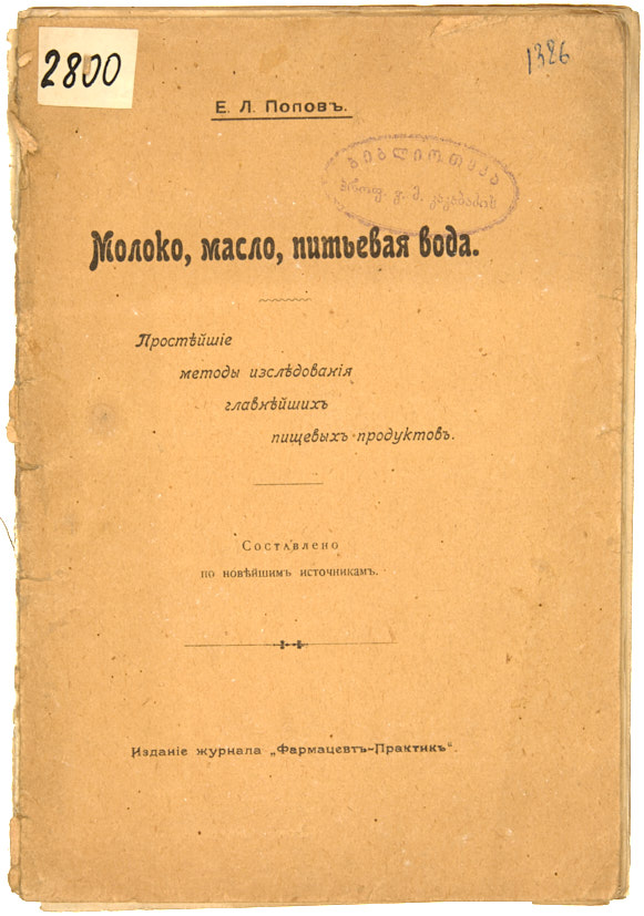 Попов, Е.Л Молоко, масло, питьевая вода. Простейшие методы исследования главнейших пищевых продуктов / Составлено по новейшим источникам. М.: Издание журнала «Фармацевт-Практик», б.г. 69,