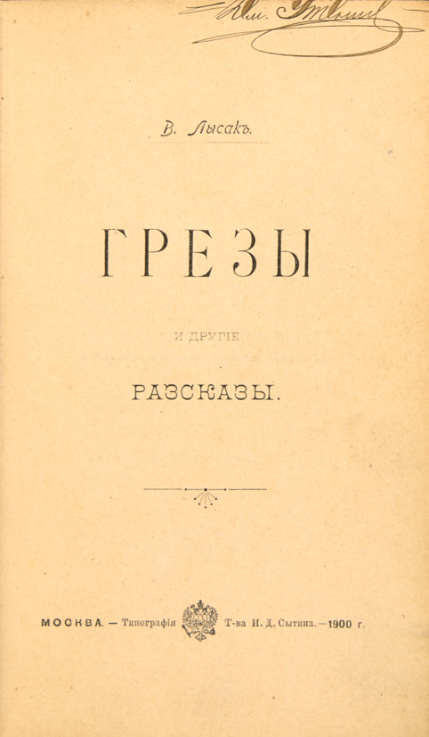 Лысак, В. Грезы. М.: Тип. Т-ва И.Д. Сытина, 1900.