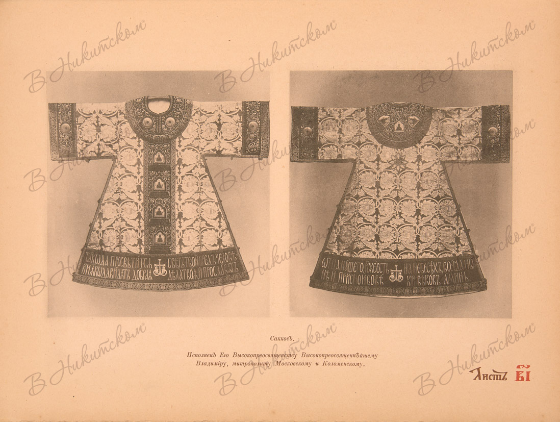 В альбом вошли изображения более 300 предметов церковной утвари, 41 образец парчи ручной работы и 43 предмета светского назначения. В предисловии говорится: «Настоящий сборник работ С.И. Вашкова по прикладному искусству, большая часть которых относится к области церкви, представляет собой краткий отчет деятельности Т-ва П.И. Оловянишникова С-я за последние десять лет».