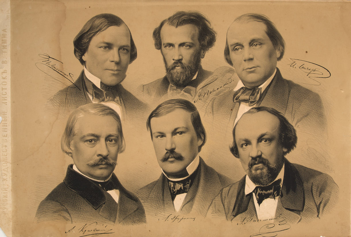 Групповой портрет поэтов, писателей и критиков журнала «Современник». 1850-е гг. Литография, 35×51 см.
