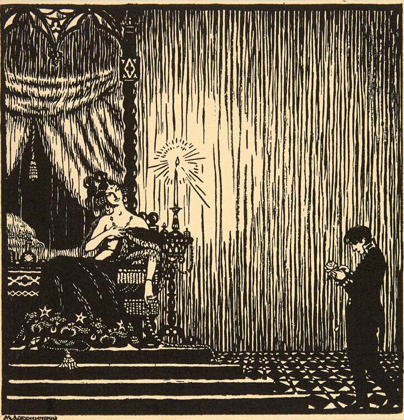 Иллюстрация 4 к романтической повести С. Ауслендера «Ночной принц». 1909 г. Цинкография, 15,2×15 см.