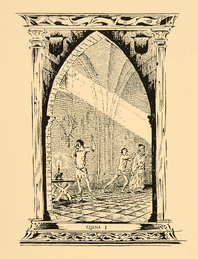 Иллюстрация к изданию пьесы А. С. Пушкина «Скупой рыцарь». 1922 г. Цинкография, 20,6×16 см.