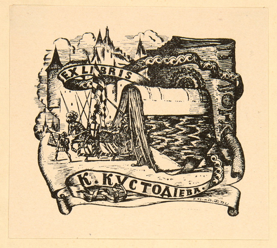 Экслибрис для книг сына художника Кирилла Кустодиева. 1921 г. Цинкография, 9,8×11 см.