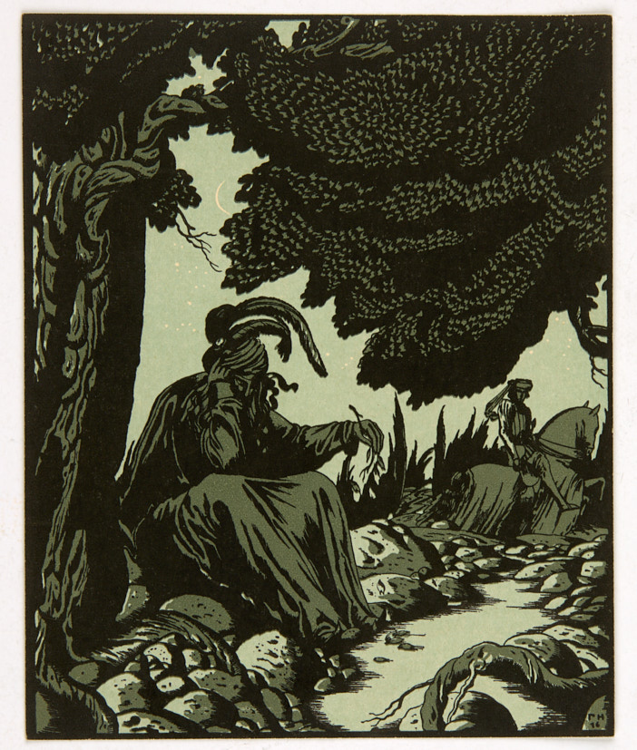 Иллюстрация к сказке С. Репнина «Сказка о любви прекрасной Королевы и Верного принца. Пг., [издательство «Башня»], 1916 г. Пробный отпечаток. Цветная цинкография, 16×12,8 см.