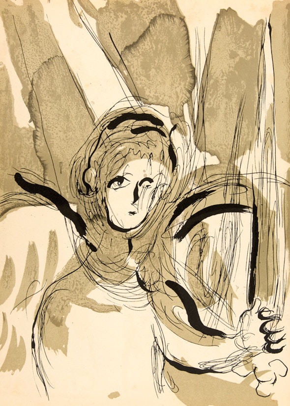 Архангел Михаил. Иллюстрация к Библии. 1956 г. Цветная автолитография, 35,5×26,5 см.