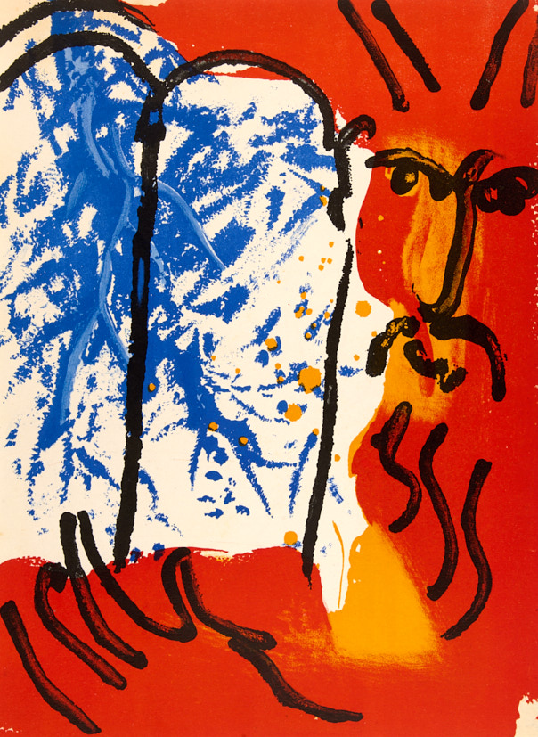 Моисей со скрижалями Завета 3. Иллюстрация к Библии. 1956 г. Цветная автолитография, 35,5×26,5 см.