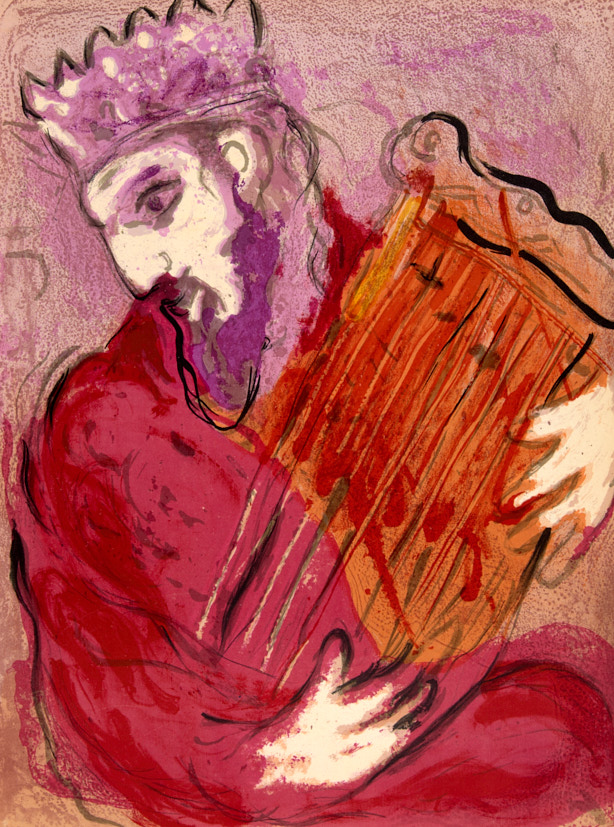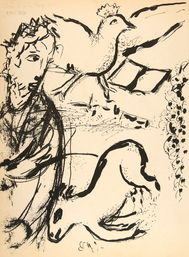 Царь Давид с арфой. Иллюстрация к Библии. 1956 г. Цветная автолитография, 35,5×26,5 см.