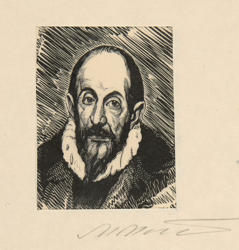 Портрет художника Эль Греко. 1930 г. Ксилография, 15,3×9 см.
