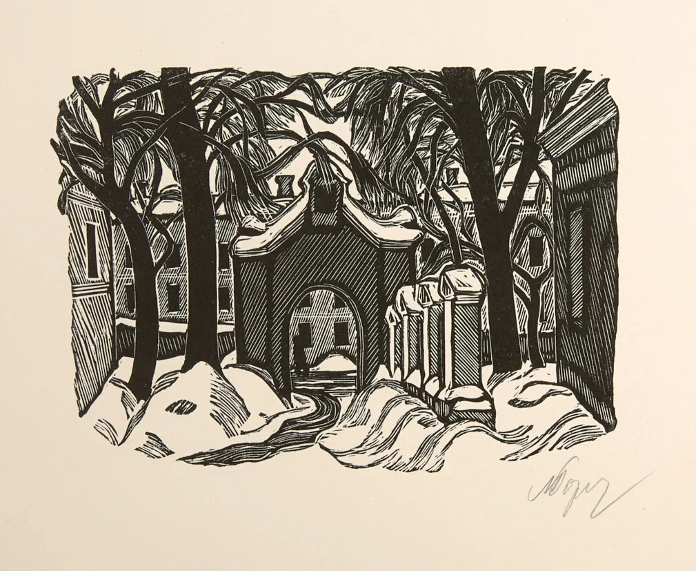 Городская усадьба. «Из серии Московские улочки». 1980-е гг. Линогравюра, 30,5×40 см.