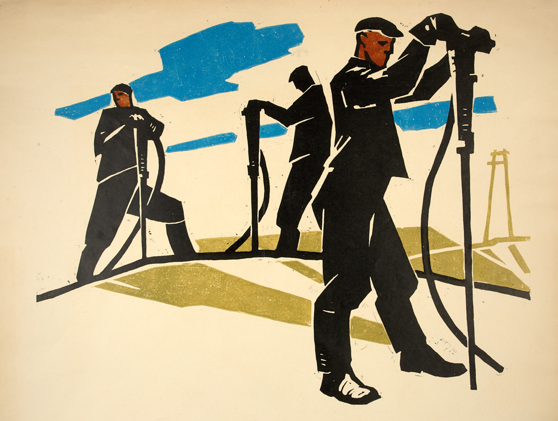 Геодезисты. 1960-е гг. Линогравюра с подкраской, 72×80 см.