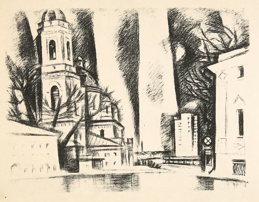 Улица Новгорода. 1960-е гг. Автолитография, 21×26 см.