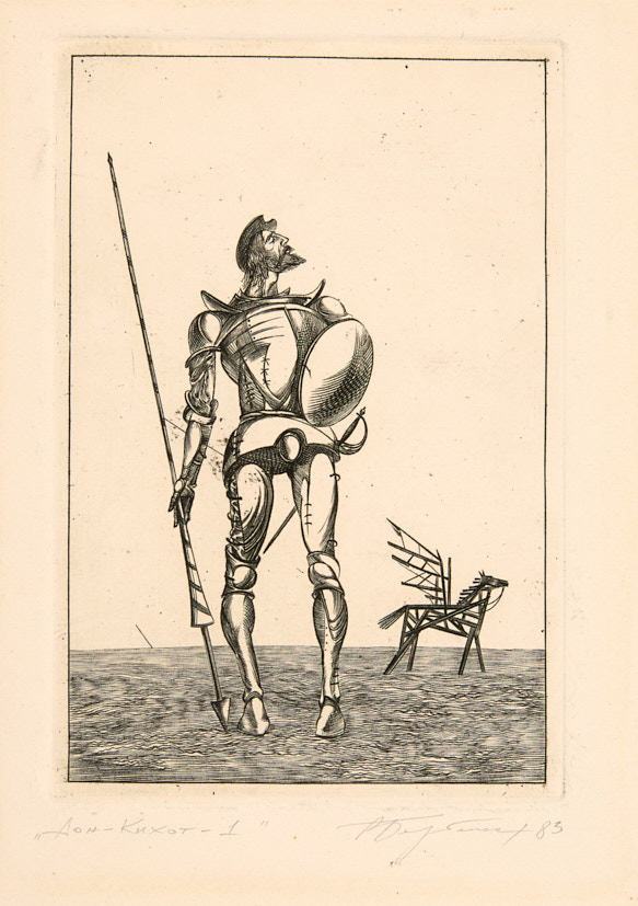 Бертельс Василий Дмитриевич (р. 1950). Иллюстрация к роману Сервантеса «Дон Кихот». 1983 г. Офорт, 21,6×15,6 см.