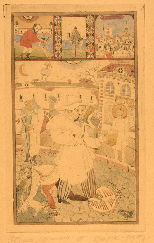 Суета сует. 1978 г. Офорт, подкраска, 30×22 см.