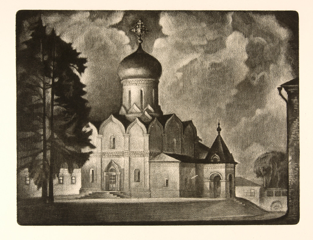 Ростовский собор в Звенигороде. 1990-е гг. Офорт, Л: 39,5×45,5; Д: 21,5×29 см.