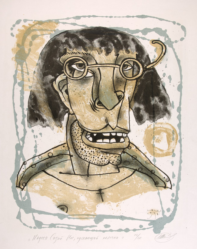 Индеец (узкий нос, пускающий колечки). 1998г. Автолитография, 60×43 см.
