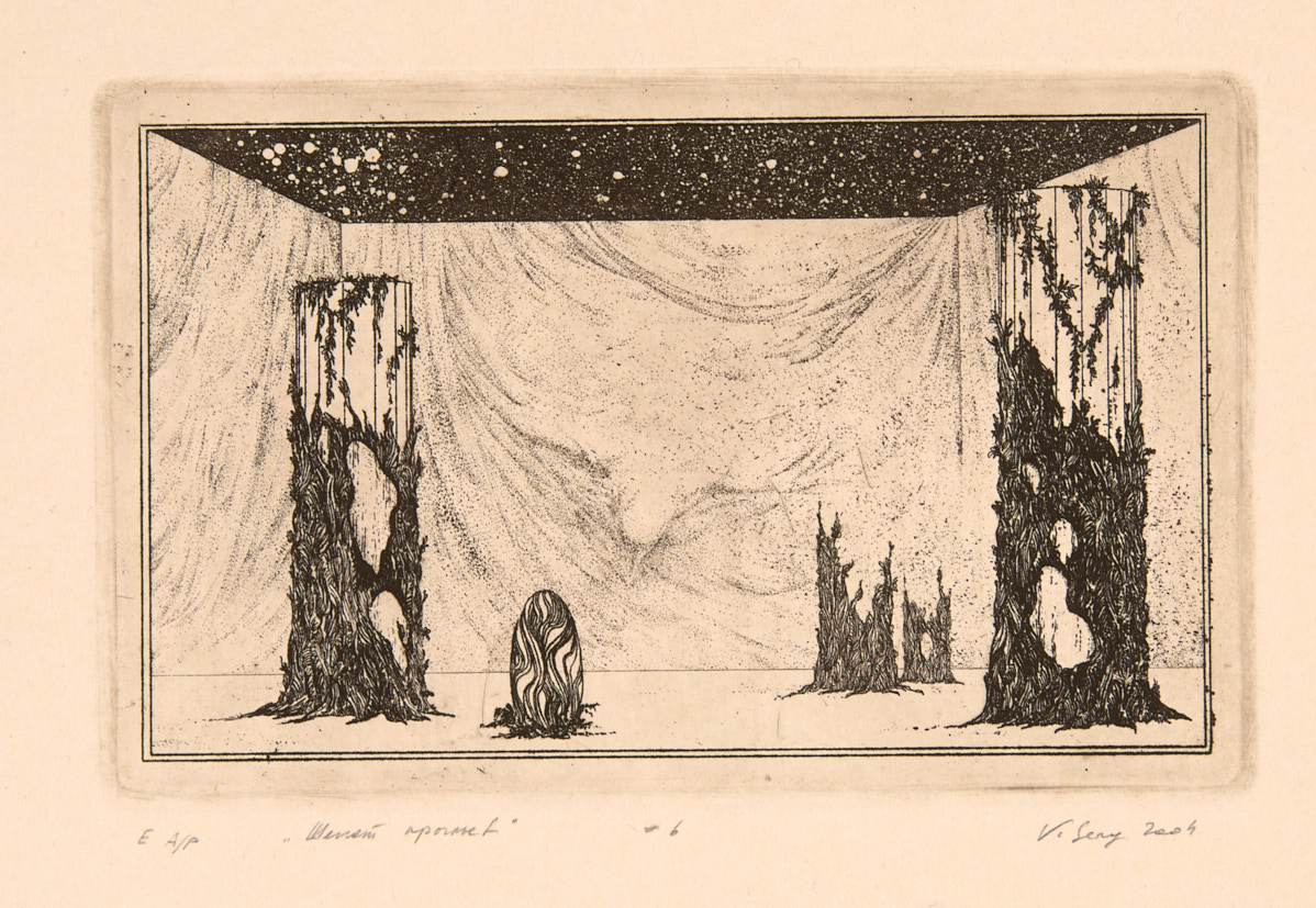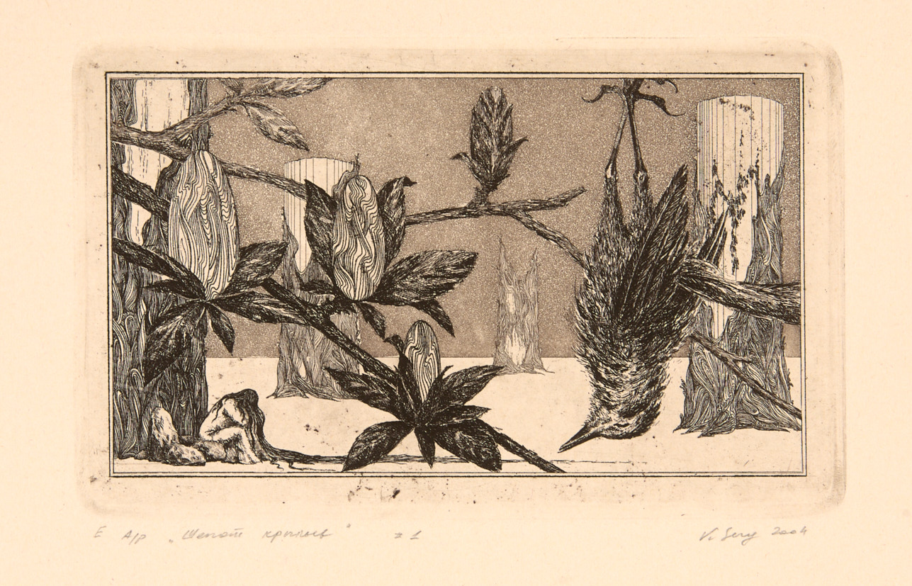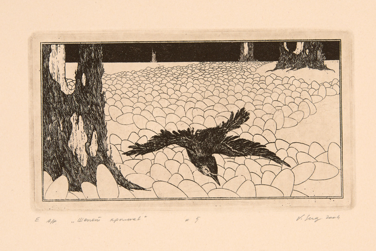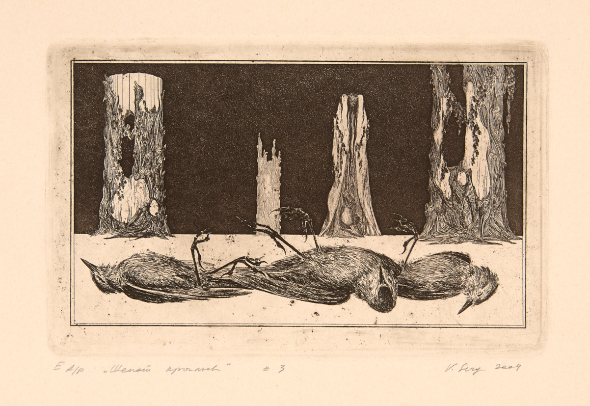 Шeпот крыльев. Сюита из 5 листов. 2004 г. Офорт, акватинта, Л: 21,5×26,2; Д: 18,3×26,2 см.
