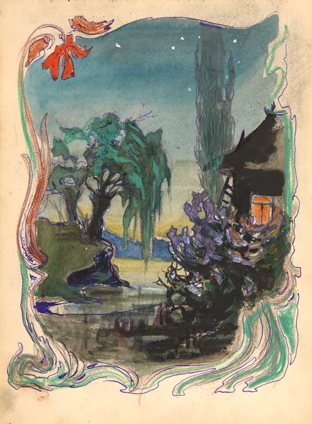Пейзаж с кипарисом и ивой. Звездная ночь. 1900 г. Бумага, чернила, акварель, гуашь, белила 29,5×21,5 см.