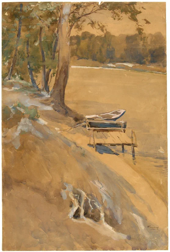 Пейзаж с озером. 1901 г. Акварель, гуашь, белила, 49,7×32,8 см.
